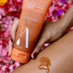 2. Spoel af met warm water. Voor het beste resultaat combineren met de Exfoliator Mitt.