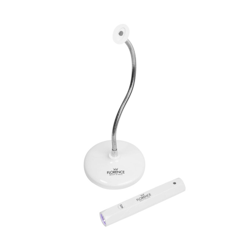 De Mini LED Light met sensor in wit is dé ideale tool voor de 1e uitharding/het vast zetten van dual forms en press-on tips. Dankzij de handige afneembare zaklamp kun je het lampje zowel op de standaard als los gebruiken. De ingebouwde sensor activeert automatisch de lamp bij gebruik, terwijl de flexibele arm van de standaard zorgt dat je altijd de perfecte hoek hebt. Compact, flexibel en efficiënt voor professioneel resultaat!