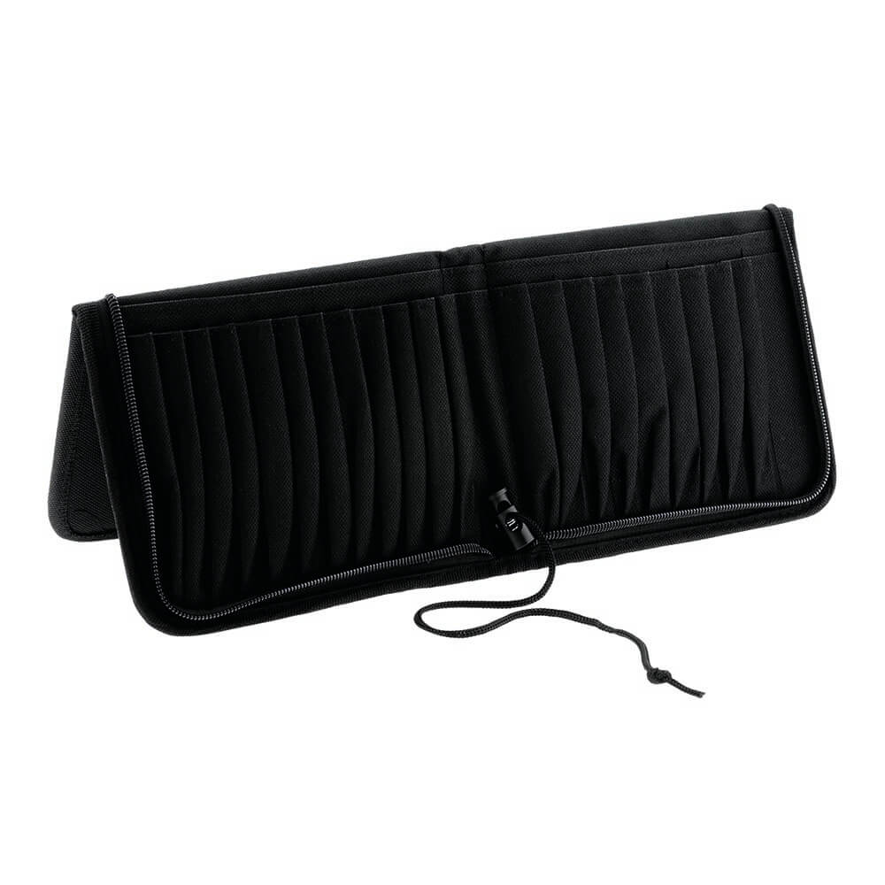Dankzij het omklapbare ontwerp zet je de etui eenvoudig rechtop op tafel, zodat je penselen altijd binnen handbereik staan tijdens je werk. Klaar met je behandeling? Dan vouw je de etui weer dicht en sluit je hem veilig af met de ritssluiting. Zo berg je je penselen compact op in je koffer, tas of lade, zonder kans op beschadiging.