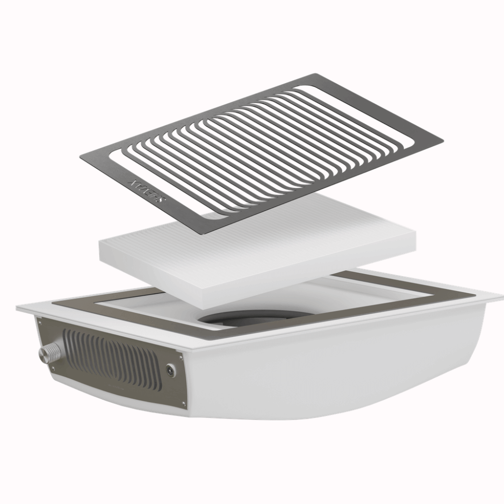 Jouw gezondheid en die van je klant staan altijd op nummer één. Een professionele nagelafzuiging is daarom onmisbaar in iedere moderne nagelsalon. De SHEMAX STYLE V-PRO inbouw afzuiging combineert krachtige prestaties met een luxe design, perfect voor de veeleisende nagelstylist.