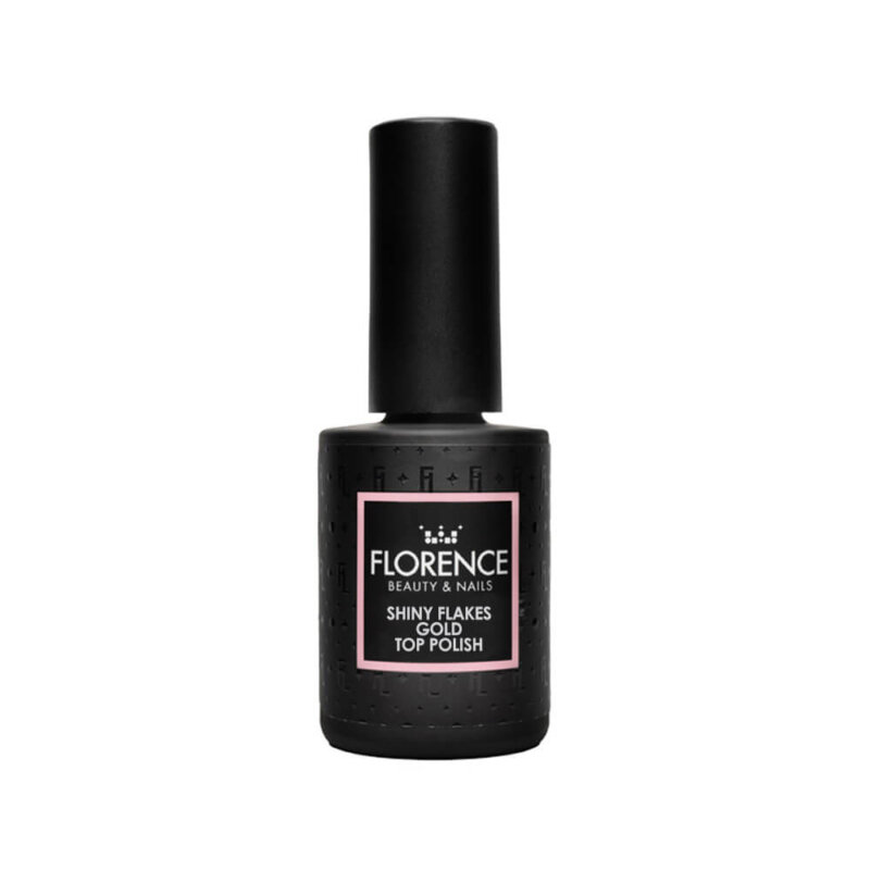Geef jouw set een luxe finishing touch met de Shiny Flakes Gold Top Polish van Florence Beauty & Nails. Deze high shine topcoat bevat verfijnde gouden flakes die het licht prachtig vangen en zorgen voor een subtiel maar opvallend effect. Perfect voor wie nét dat beetje extra glamour wil, zonder in te leveren op elegantie.