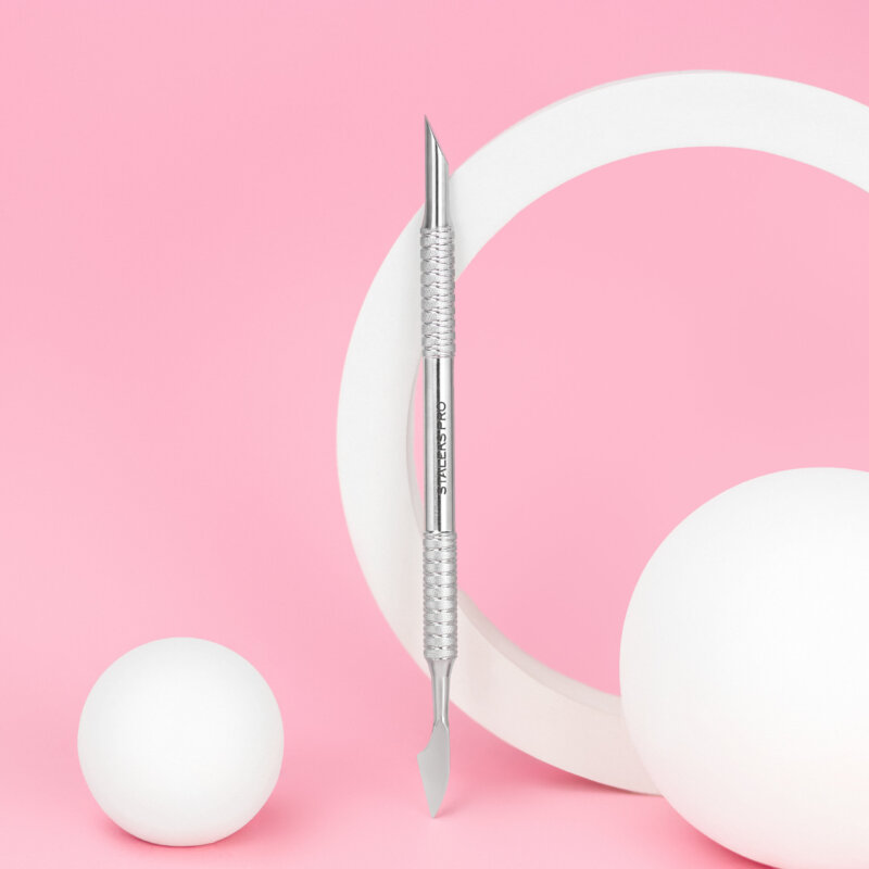 Deze cuticle pusher van STALEKS is geschikt voor de voorbereiding van de manicure. De pusher wordt gebruik om grove en sterk vastzittende nagelriemen op te lichten en terug te duwen, de vrije rand van de nagel schoon te maken en druppels product te verwijderen. Met de platte/puntige kant van de cuticle pusher kun je de huid van de nagel en onder de nagelriem verwijderen.