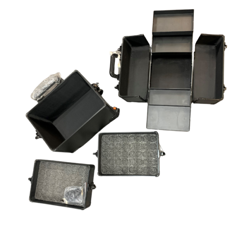 Een professionele cosmetica trolley met veel opbergruimte door de verschillende lagen en verschillende vakjes om alles gestructureerd en veilig op te bergen. Super handig om overal mee naar toe te nemen door de wieltjes die onder de trolley bevestigd zitten. Ook verkrijgbaar in een koffer!