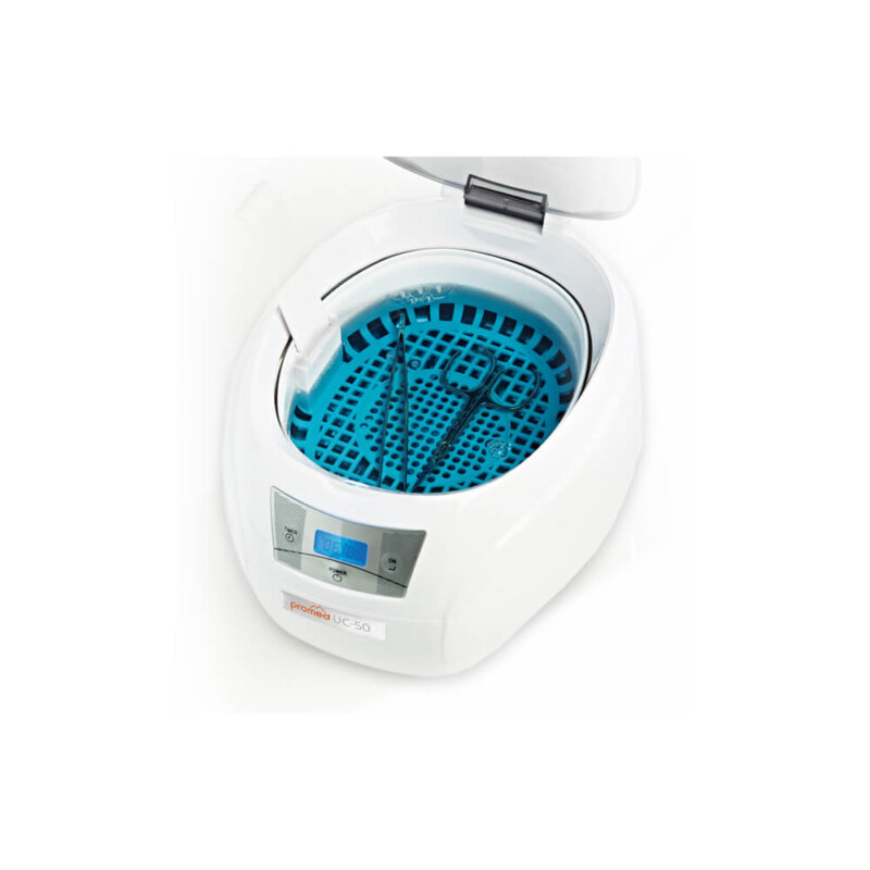 Met deze Ultrasoon reinig je, in combinatie met de Medisept IQ 2 in 1 desinfectie vloeistof, heel gemakkelijk je instrumenten. Door ultrasone vibraties met hoge frequenties worden alle instrumenten grondig schoongemaakt. De timer kan ingesteld worden tussen de 3 en 7 minuten en de temperatuur tussen de 40 en 60 graden. De Ultrasoon is voorzien van een speciale witte behuizing die gemaakt is van roestvrijstaal waardoor deze resistent is tegen bacteriën en tegen aceton kan. De inhoud is 500ml.